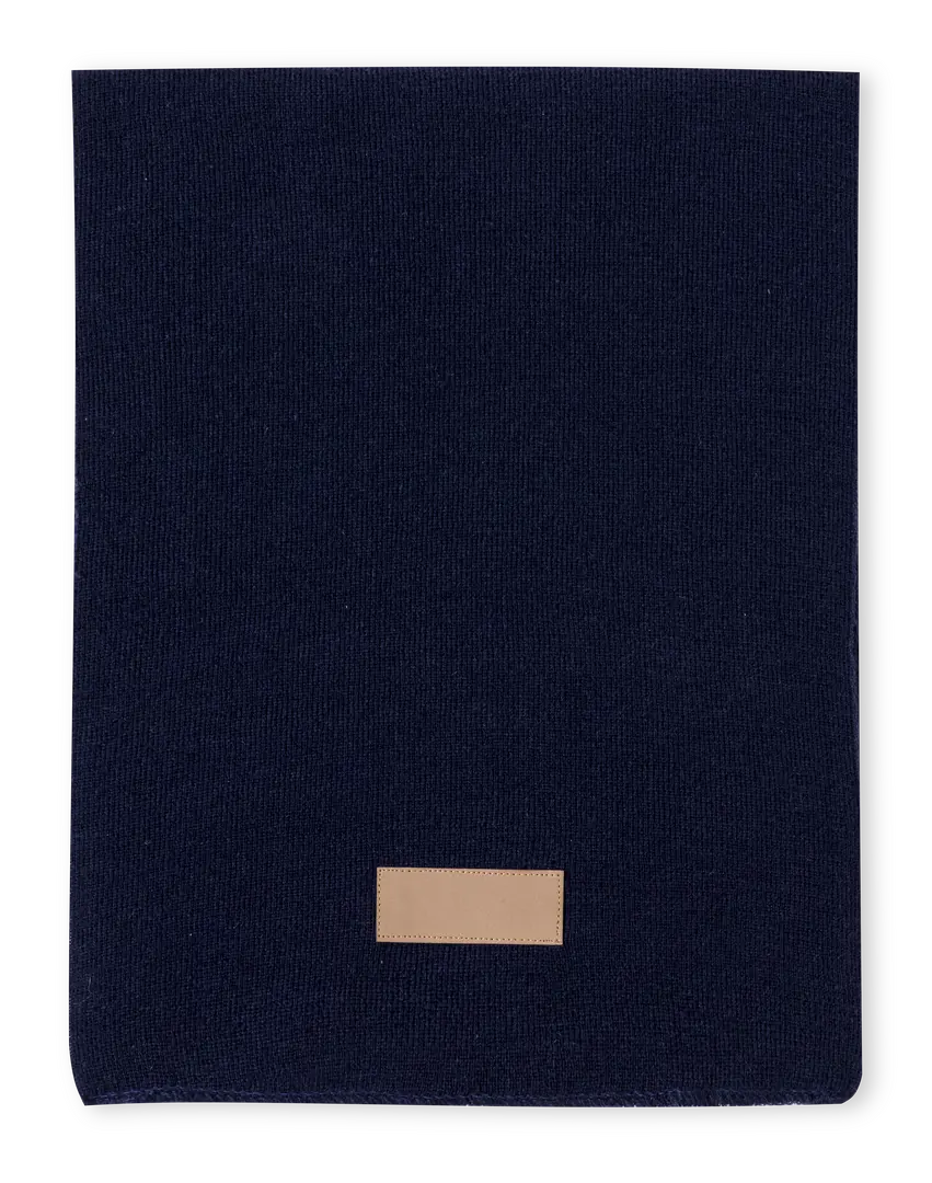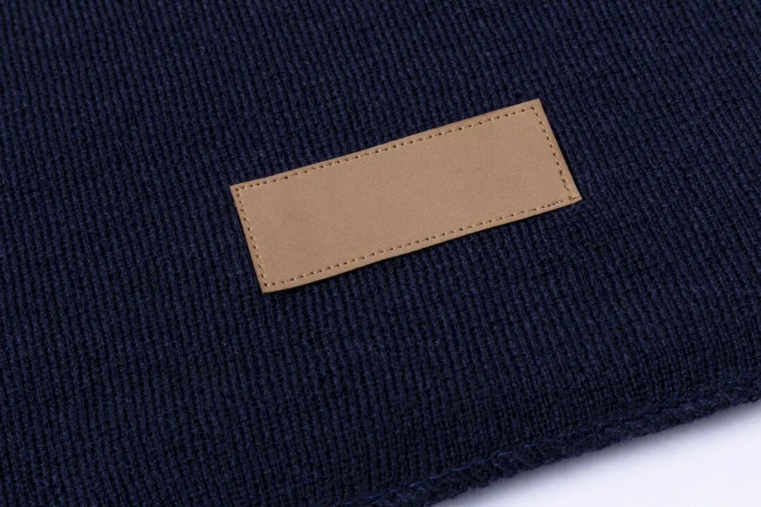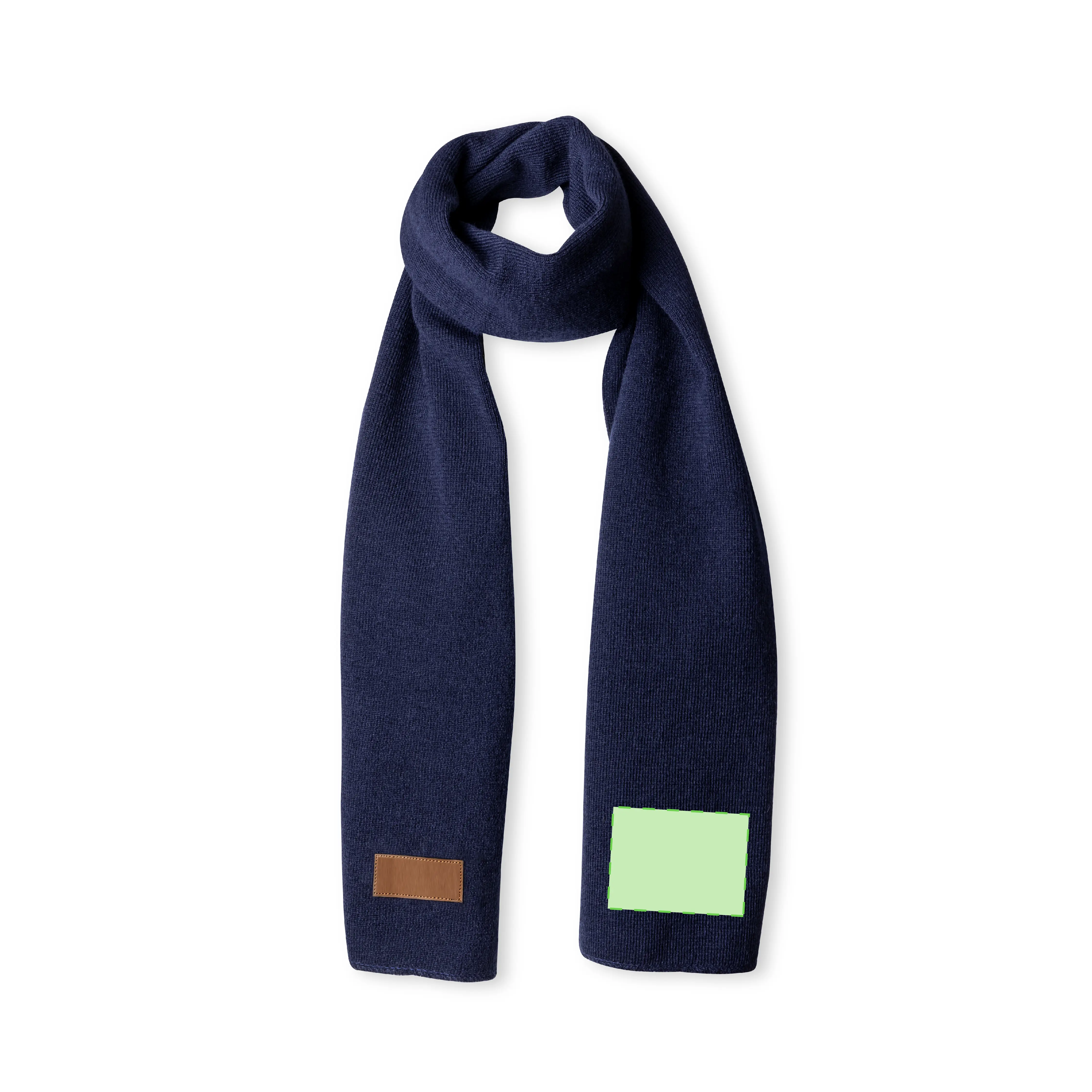 Bufanda unisex fabricada en material acrílico elástico. Con parche en polipiel cosido para marcaje y disponible en variada gama de colores.