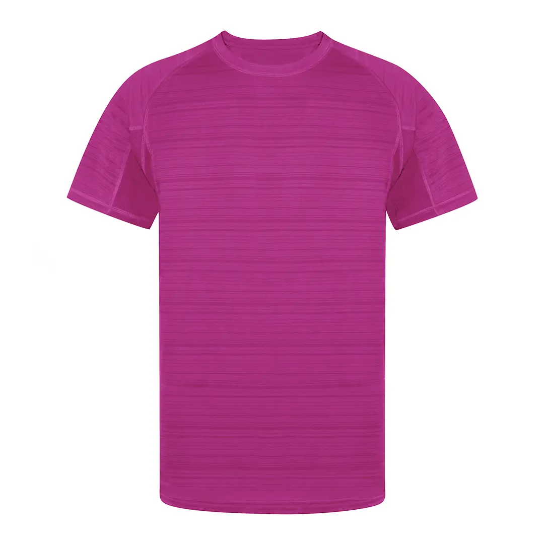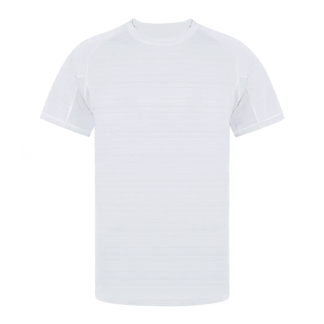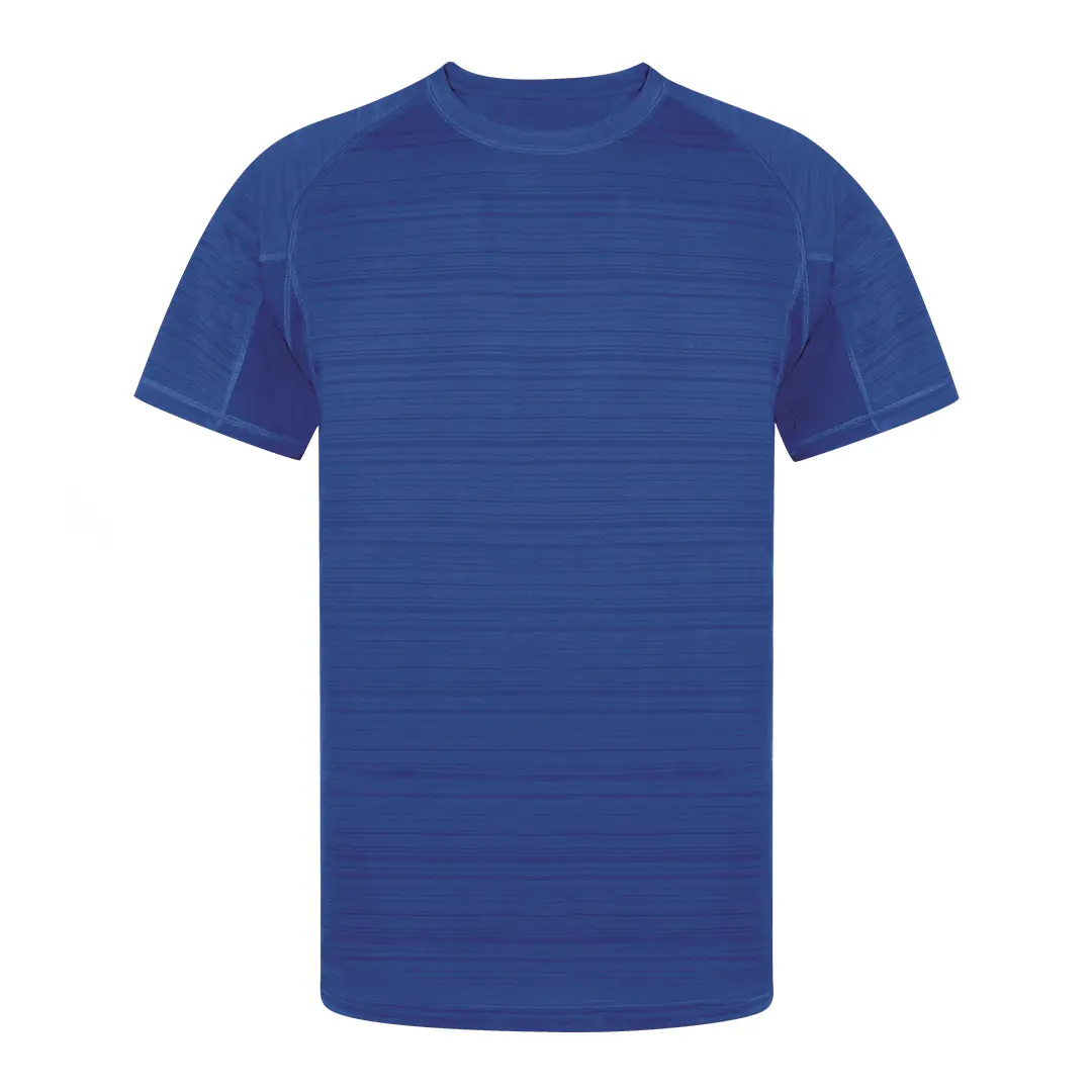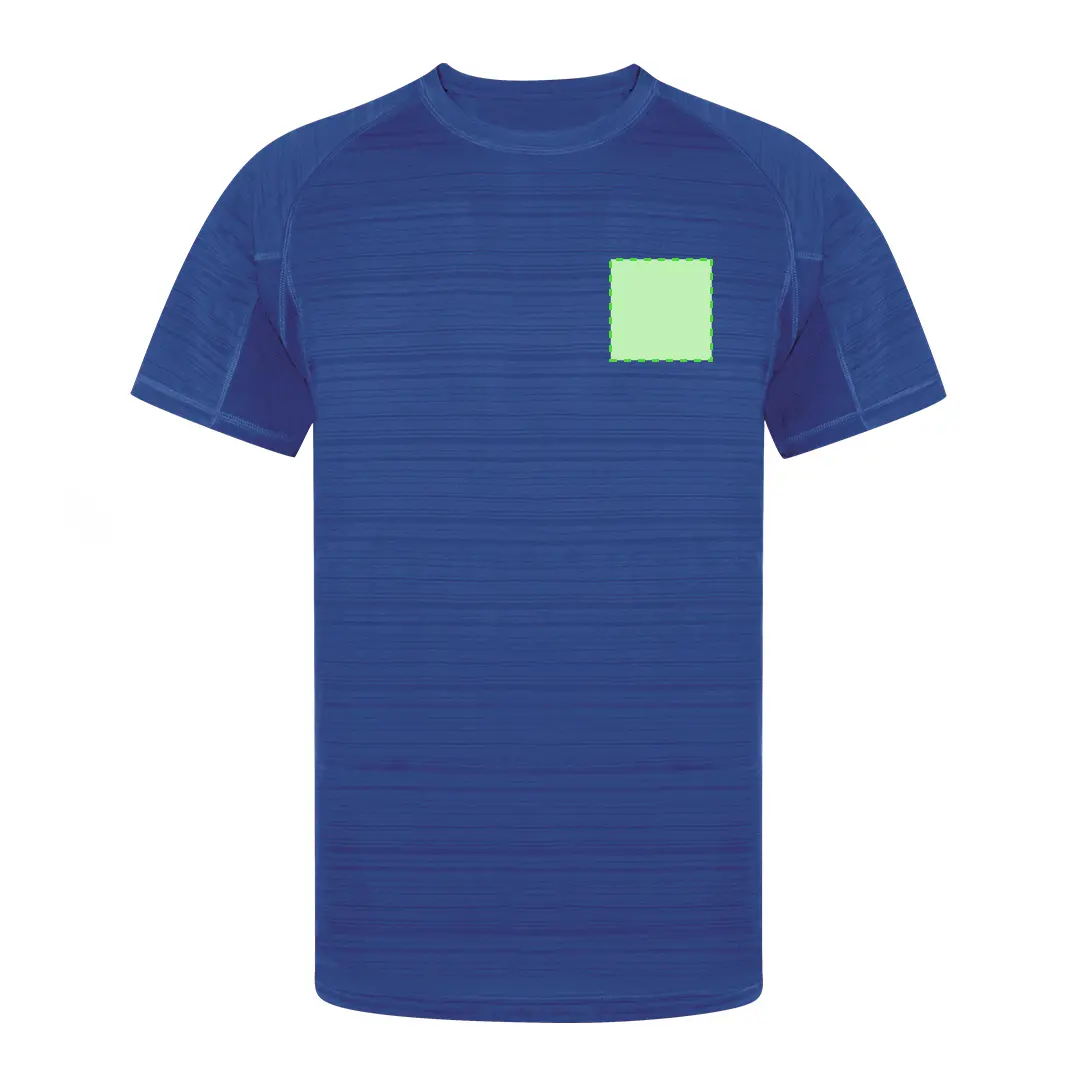 Camiseta técnica unisex con original diseño a rayas, en combinación con tejido transpirable microperforado en axilas y laterales. Confeccionada en suave material 100% poliéster de 135g/m2, siendo una camiseta muy cómoda, ligera y transpirable; ideal para la práctica de deporte y también como prenda de uso diario. De corte moderno, manga ranglán y cuello redondo, con doble costura en dobladillo y mangas de doble tejido para una mayor durabilidad y resistencia al uso intensivo. Disponible en tallas XS, S, M, L, XL y XXL.