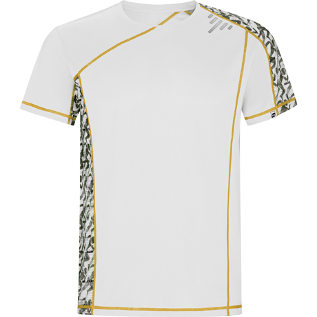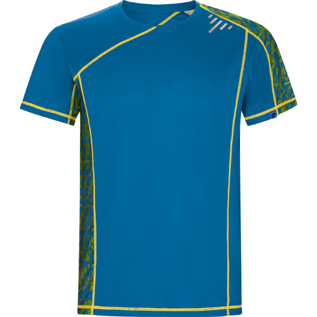 Camiseta técnica de manga raglán con paneles sublimados. Poliéster Reciclado CONTROL DRY. Remallado en flúor (excepto color blanco 183). Detalles reflectantes y faldón trasero. Etiqueta identificativa logo ECO en manga.
