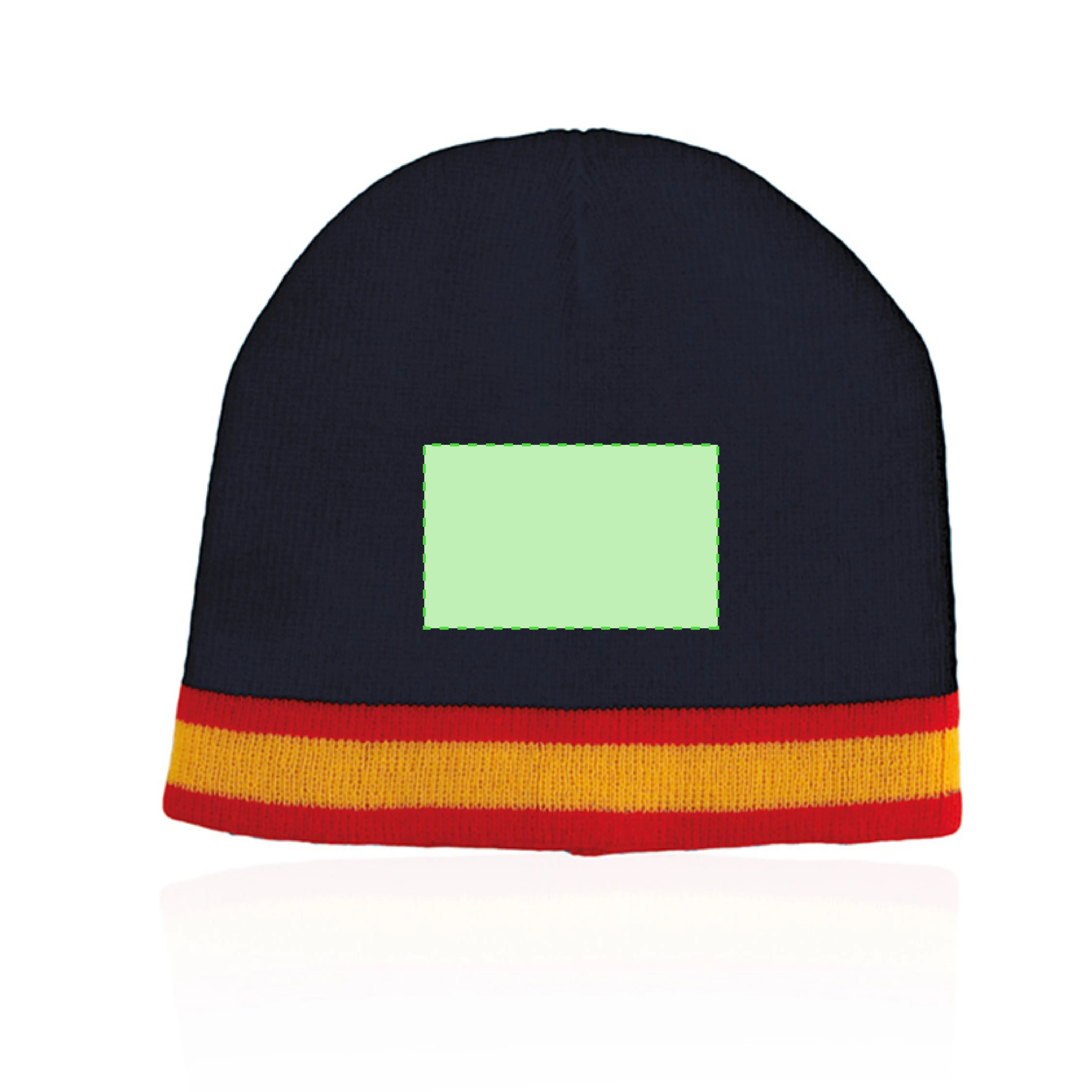 Suave y cálido gorro en combinación de materiales algodón y poliéster elástico de diseño España con doble cobertura. Disponible en colores azul y blanco.