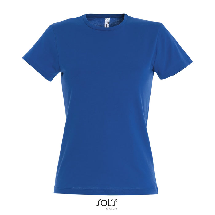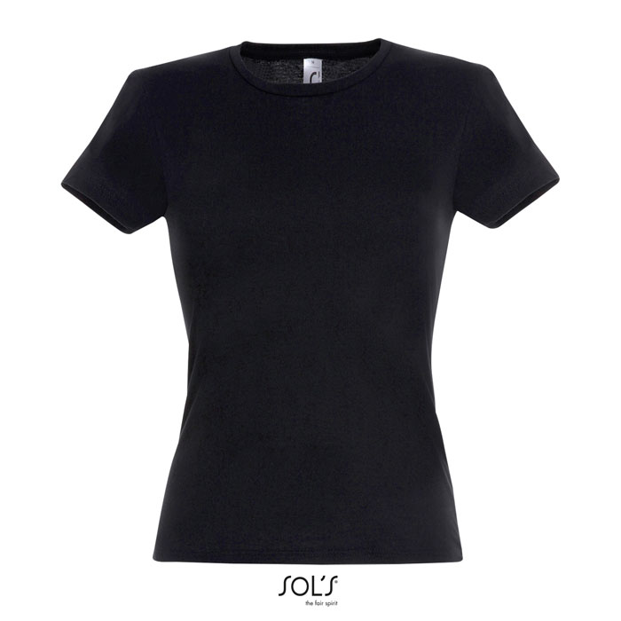 SOL'S MISS Camiseta Mujer 150g/m². Su acabado, su cuello y su amplia gama de colores hacen que esta prenda se diferencie de la competencia, 100% algodón semi peinado ringspun, tapa costuras reforzada en el cuello, escote de punto liso, manga corta, corte entallado, cuello fino, costuras laterales. .
