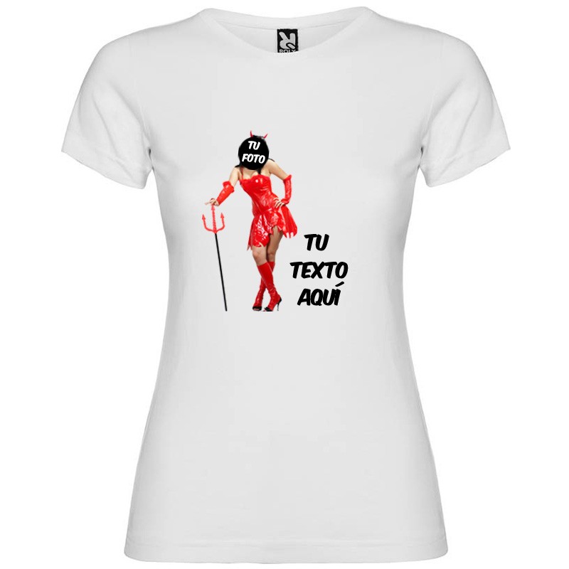 Camiseta blanca de manga corta para mujer con diseño para despedida de diablesa
